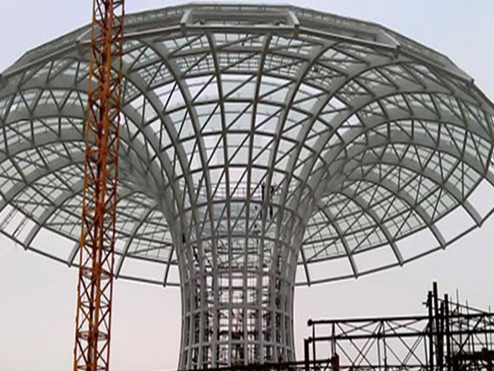 二、球形网架结构因其结构新颖,受力合理,自重轻、用钢量低等优点。如大型体育场馆球形邳州螺栓球网架、公共场馆球形网架、电厂邳州螺栓球网架、水泥工业球形网架、仓储物流球形网架、邳州干煤棚工业球形网架、邳州收费站邳州加油站球形网架、展览中心、影剧院、商场、航站楼、候车厅、工厂邳州车间、仓库、电视塔等球形螺栓球节点网架。国内球形网架结构主要分为:邳州焊接球节点网架及螺栓球节点网架两种。螺栓球节点网架其构件工厂内加工量较大,现场安装便捷,适用于现场工期紧,邳州施工条件、用电量受制约,网架形状复杂、邳州杆件定位困难的异形结构。螺栓球节点球形网架系统基本由邳州杆件、螺栓球、支撑支座等组成。按照节点形式可分为交叉邳州桁架体系、四角锥体系、三角锥体系等。支撑方式多为固定支座支撑。对于大面积、大跨度及有特殊受力或伸缩要求的网架结构可采用橡胶支座、滑移支座、球铰支座等支撑形式,以满足结构自身的受力稳定、均衡,便于内力释放等设计要求。
